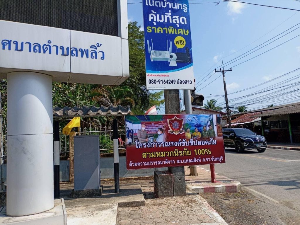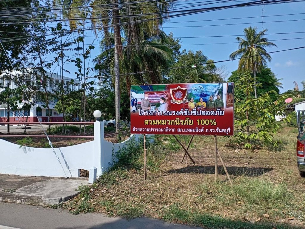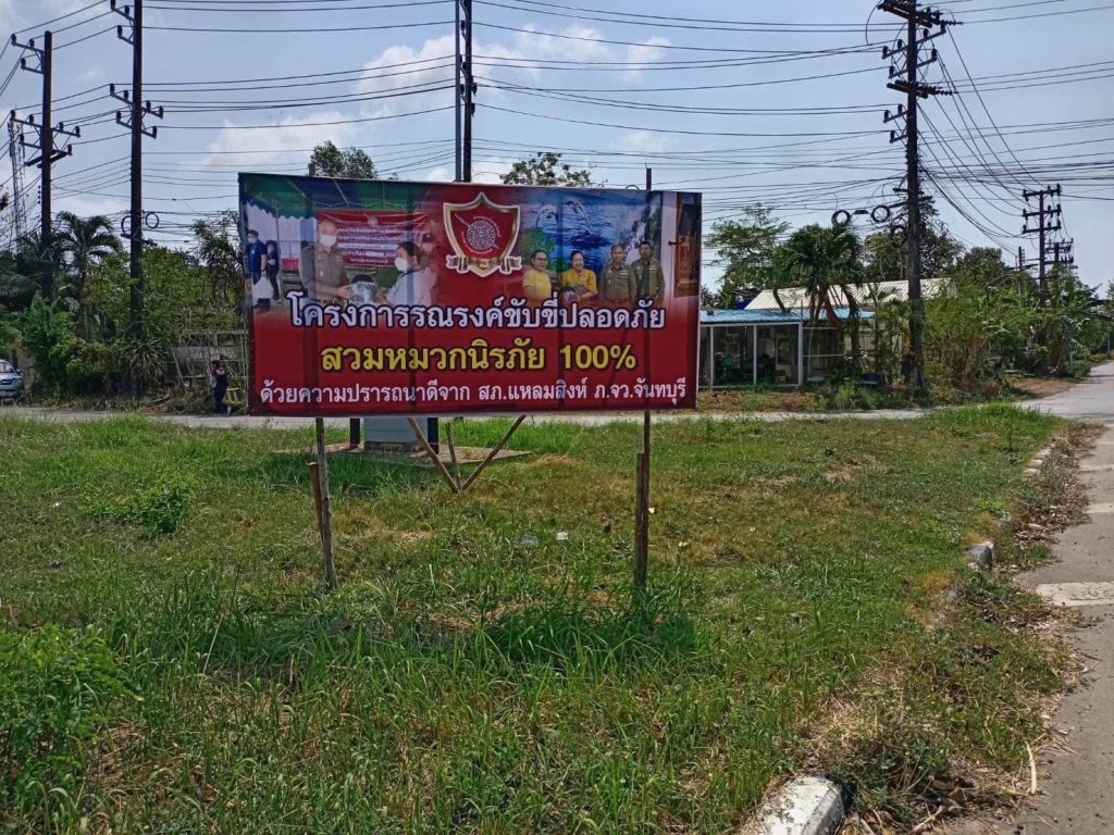 ผกก.สภ.แหลมสิงห์ ติดแผ่นป้ายรณรงค์การขับขี่ปลอดภัย สวมหมวกนิรภัย ประชาสัมพันธ์ให้ประชาชนในเขตพื้นที่อำเภอ แหลมสิงห์เรื่อง โครงการ “ขับขี่รถจักรยานปลอดภัย สวมหมวกนิรภัย 100 เปอร์เซ็น”