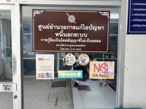ติดตั้ง ป้ายประชาสัมพันธ์ ไม่รับสินบนของกำนัลทุกชนิดทั้ง ภาษาไทย-อังกฤษ บนสถานี ที่สามารถมองเห็นได้ชัดเจน เพื่อแสดงถึงนโนบายการต่อต้านการรับสินบน